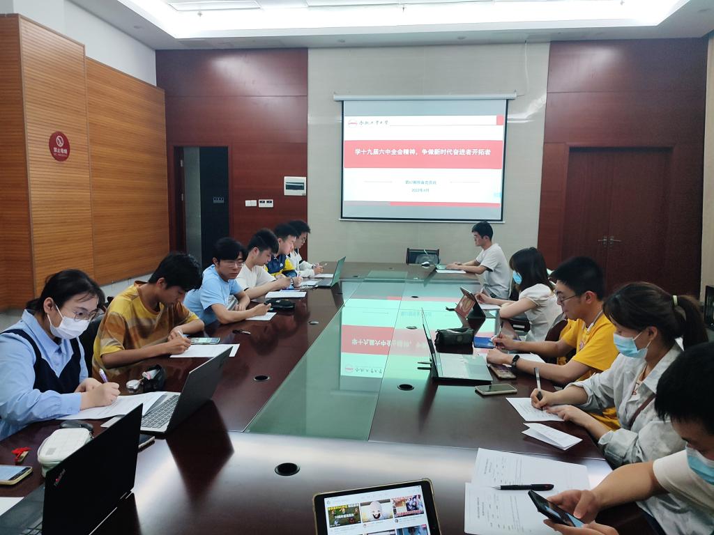本次主题学习研讨活动紧密围绕学习党的十九届六中全会精神,采取分组个人分享、互动交流、集中总结的方式进行。研讨中,学员们集体学习了《中共中央关于党的百年奋斗重大成就和历史经验的决议》,通过分享中国共产党团结带领中国人民百年来为实现中华民族伟大复兴进行的奋斗、牺牲和创造,全方位的展示了中国共产党为中国人民谋幸福,为中华民族谋复兴的初心使命。有的同学通过对伟大建党精神的分享,号召广大青年要抓住学习的大好时机,学好专业知识,投身社会实践,在实学实干中让青春绽放光彩。有的同学结合脱贫攻坚精神和伟大抗疫精神,向同学们发出做好模范带头作用,勇于担当,积极主动,为疫情防控发出青年党员的声音,做出青年党员的贡献。有的同学结合个人科研和竞赛经历,分享了我国科技飞速发展的伟大成就,立志为解决“卡脖子”难题拿出青年方案,贡献青年智慧。