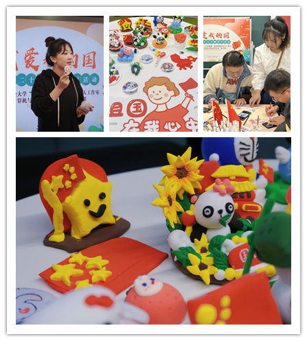 为喜迎党的二十大胜利召开,巧手颂党恩,近日,“立心聚魂”党班团协同育人辅导员工作室联合英国上市365官网本科生第一党支部为党员师生们上了一堂生动的制作党员徽章创意黏土课。通过“爱国徽章DIY”和制作粘土画的形式,表达出对党和祖国的热爱与祝福。