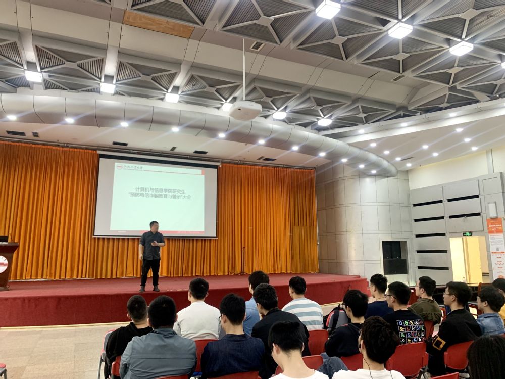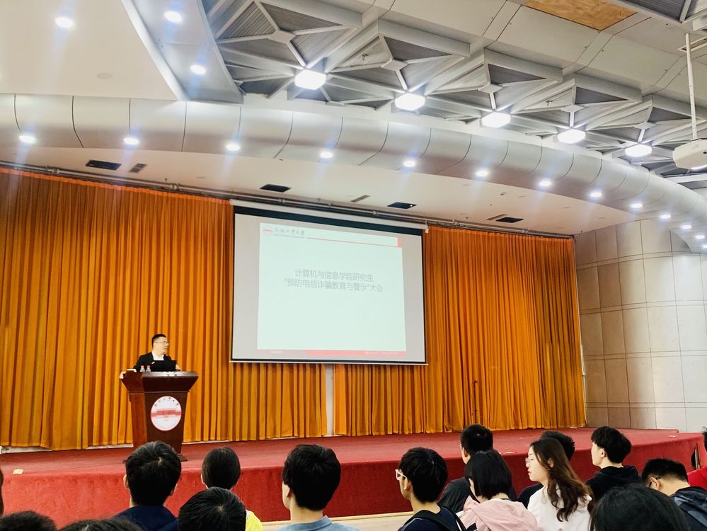 为了让同学们进一步了解网络诈骗,增强365官网研究生对网络诈骗的防范意识,营造浓厚的校园反诈氛围,英国上市365官网于4月29日上午在综合楼301召开防诈骗安全教育与警示大会,学院全体研究生参加,党委学生工作部、学院分管领导以及党委保卫部的相关老师出席了本次大会。