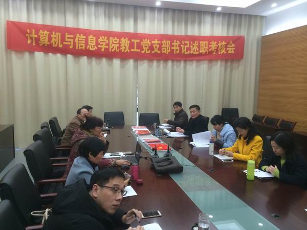 2017年12月27日上午,学院“2017年度教工党支部书记抓党建述职评议考核会”在翡翠科教楼第一会议室召开,会议由院党委书记祖权主持,院党委委员和学院10个教工党支部的书记参加了评议考核会。