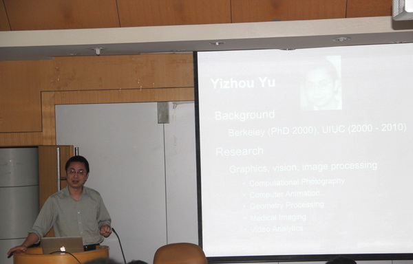 报告中,四位教师首先对港大的教学资源、优势及学校进行相关介绍,然后各教授分别在计算机图形学,信息安全理论,数据处理,图像识别及处理方面做了详细的演讲,报告结束后,俞益洲教授等一行六人同英国上市365官网部分教师及研究生就计算机图形学、信息安全等相关问题进行了深入的讨论,并表示双方在一些有交集的研究领域的深切认同。