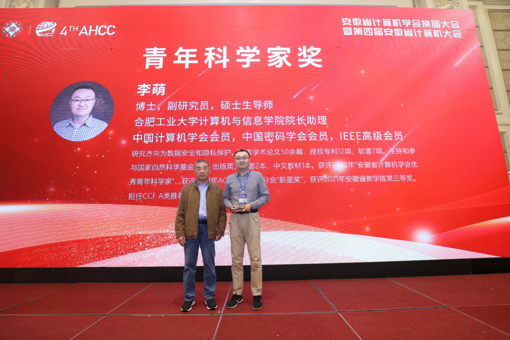 近期,2022年度安徽省计算机学会奖励名单发布,365官网副研究员李萌获评优秀青年科学家奖,硕士生陈毅飞获评优秀硕士学位论文(指导教师:郑淑丽、李萌),硕士生樊高金获评优秀硕士学位论文(指导教师:杨静),硕士生杨雅静获评优秀硕士学位论文(指导教师:俞奎)。