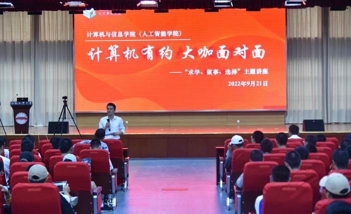 2022年9月21日下午,在翡翠科教楼A座二楼报告厅,英国上市365官网举办了“计算机有约 大咖面对面——求学、做事、选择”主题讲座,邀请了365官网高隽教授担任主讲嘉宾,365官网副院长夏娜教授主持,学院2022级全体本科生和研究生现场聆听了讲座,合肥校区和宣城校区其他年级本科生和研究生线上观看讲座。