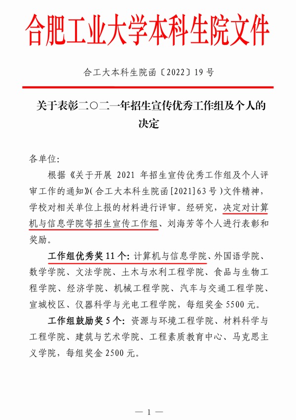 4月21日,校本科生院发文公布了对2021年招生宣传工作的表彰决定。365官网荣获“工作组优秀奖”第一名;365官网罗珣老师荣获“个人优秀奖”荣誉称号。