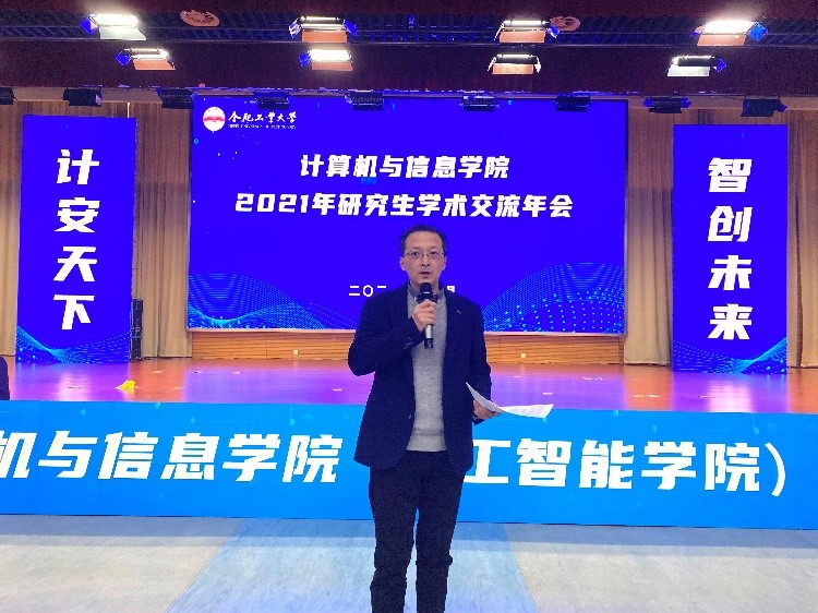 为提高365官网研究生的学术素养,开拓学术视野,加强学术交流,搭建高水平学术交流平台,在学校研究生院的大力支持下,2021年12月16日,365官网于翡翠湖校区科教楼二楼学术报告厅成功举办了“计安天下,智创未来”英国上市365官网2021年研究生学术交流年会。计算机学院党委书记年永琪,副院长洪日昌,党委副书记、副院长张海林,副院长夏娜,软件学院副院长薛峰出席年会,特别邀请中国科学技术大学李厚强教授、合肥中科类脑智能技术有限公司邵梦副总经理作报告,路强副教授、吴克伟副教授等十余位青年教师及700余名研究生参加大会。