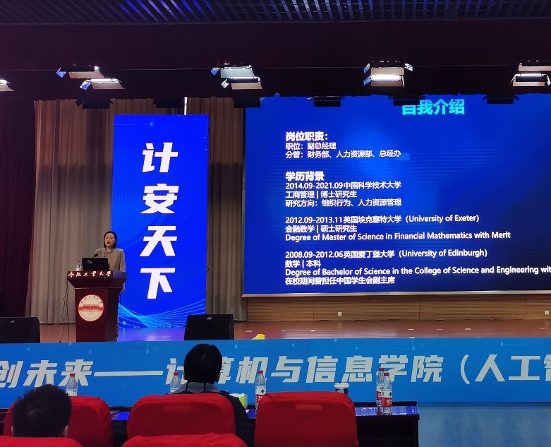 邵梦副总经理向大家做了关于前沿AI落地探索及创业实践的报告,从中科类脑成立背景与发展历程、创业中遇到的问题、人才择业这三个部分展开,在创业和就业方面提出了许多建设性的建议。报告结束后,夏院长和路老师提出了关于企业发展,人才招聘,合肥本地发展潜力等问题,同学们紧随其后提出了困扰着自己的问题,并且在交流的过程中获得了收获。