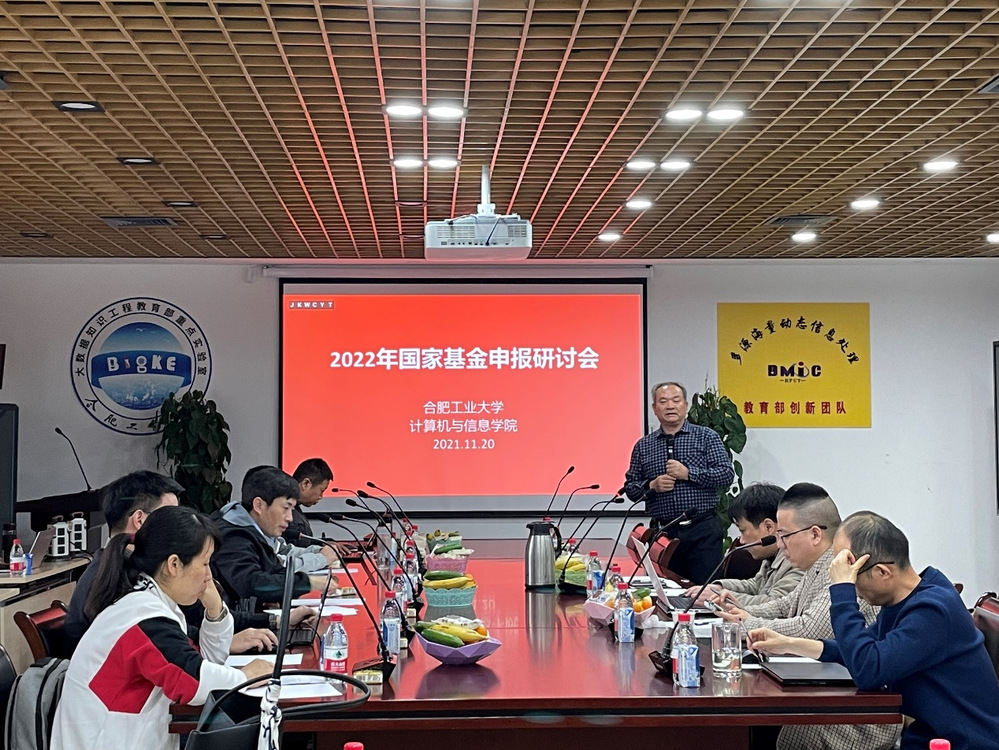 本次会议包括以下两部分:(1)2021年国家自然基金申报回顾、经验分享;(2)2022年基金申报交流。研讨会由胡学钢教授主持,指导专家包括洪日昌教授、胡学钢教授、谷雨教授、俞奎教授、李培培副教授等,学院共22位教师参加了会议。参会老师积极分享了申报经验、预申报基金内容和进度,专家组老师对预申报基金提出了建议。本次研讨会顺利召开。