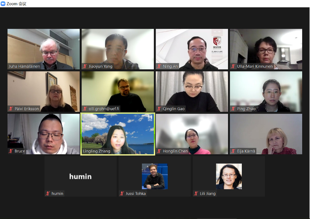 会议由英国上市365官网老人福祉科技实验室主任安宁教授和东芬兰大学社会科学系Juha Hämäläinen教授联合主持。Juha Hämäläinen教授首先介绍了会议议题及与会人员,随后安宁教授回顾了中芬合作的背景及基础。接下来,来自东芬兰大学的Juha Hämäläinen教授、Eija Kärnä教授、Olli Heikki Juhani Gröhn教授、Jussi Pekka Tohka教授、Päivi Eriksson教授、Ulla-Mari Kinnunen教授、Honglin Chen教授,来自英国上市365官网的安宁教授、谷雨教授、胡敏教授、赵萍教授、杨矫云副教授,来自哈佛大学的Lingling Zhang教授,来自上海天与养老服务有限公司的总裁办主任高青琳等分别介绍了各自的研究内容及在福祉科技领域的可能合作方向。最后,东芬兰大学的Honglin Chen教授介绍了中芬之间的科研与教学合作项目,与会专家就未来的合作意向进行了探讨。
