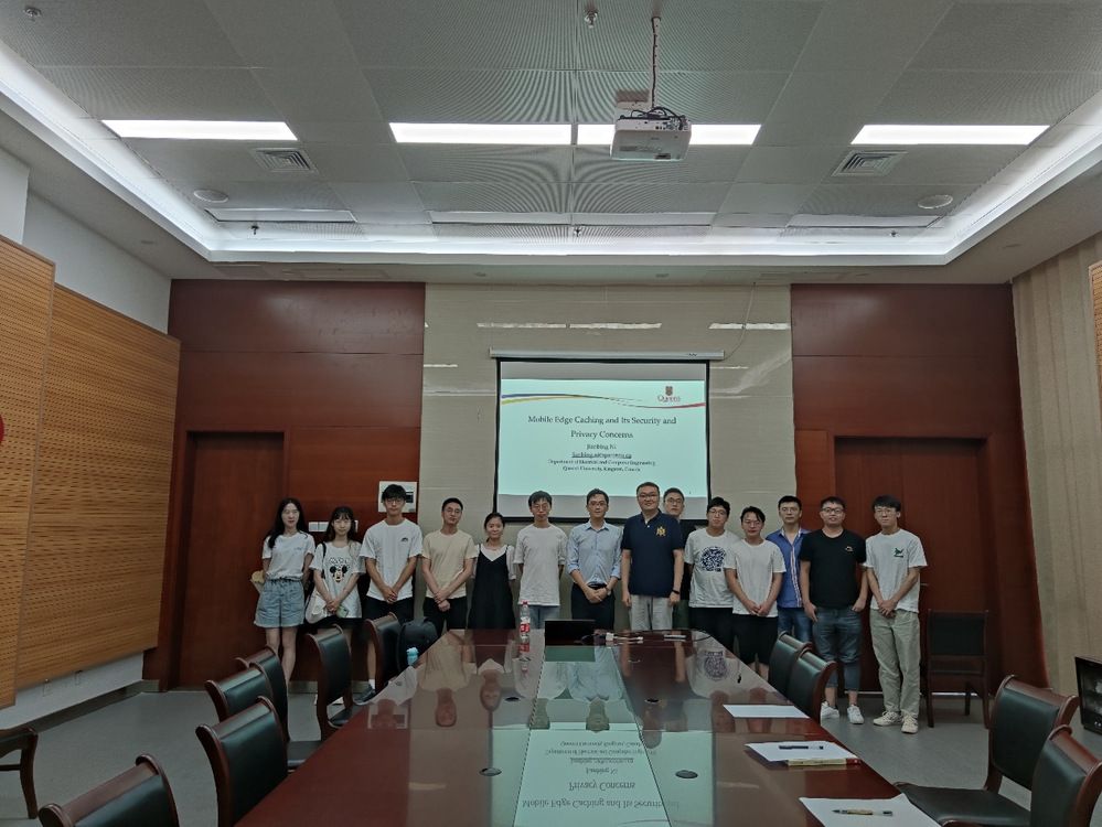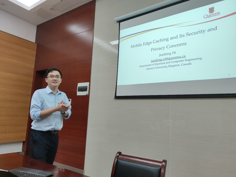 应英国上市365官网网络与信息安全研究所李萌副研究员的邀请,2021年7月1日,加拿大Queen’s University的Jianbing Ni教授在翡翠科教楼A座第三会议室为365官网师生做了题为“Mobile Edge Caching and Its Security and Privacy Concerns”的学术报告。李萌老师主持了本次报告会,学院相关研究方向研究生和本科生参加了报告会。