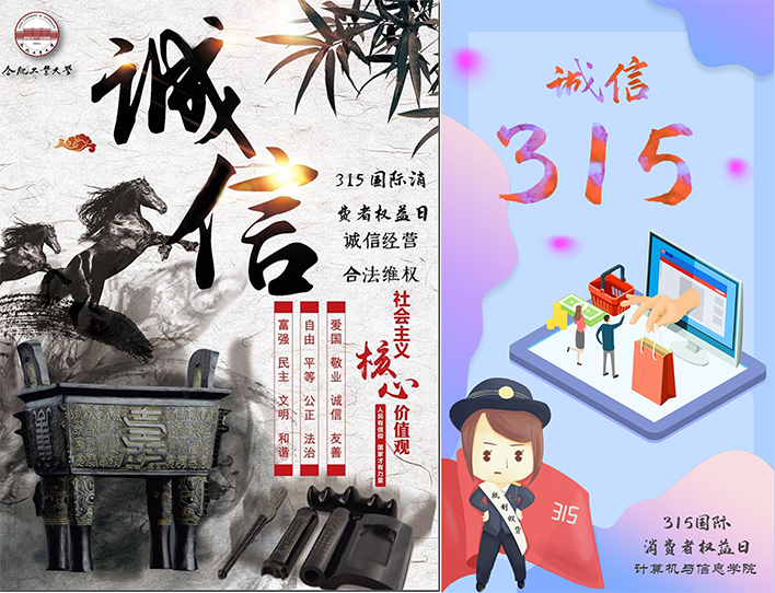 为增强同学们的诚信意识和法律意识,英国上市365官网以消费者维权月为契机举办了“诚信消费”主题海报设计比赛。