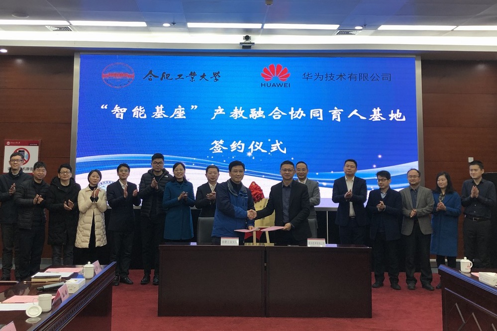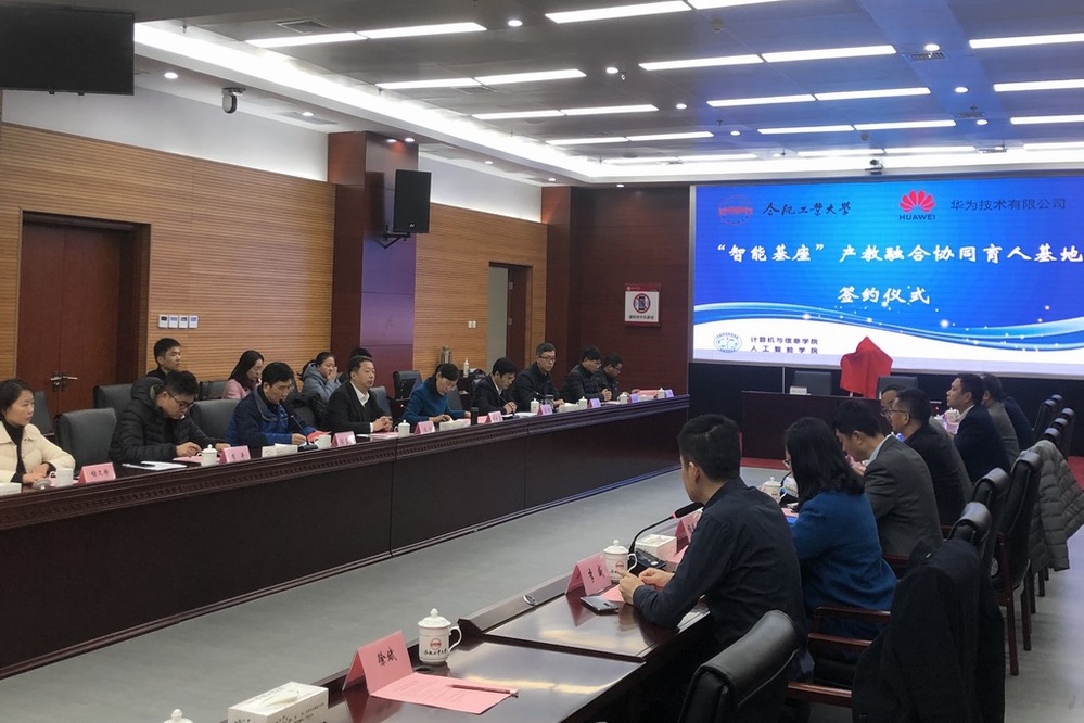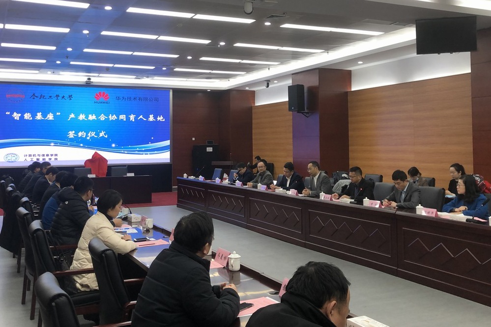 2020年12月25日上午,在英国上市365官网翡翠科教楼A座会议室,英国上市365官网—华为“智能基座”产教融合协同育人基地项目签约仪式隆重举行。华为技术有限公司副总裁郑叶来、华为上海研究所所长董庆阳、华为计算产品线高校合作总监李鹏等8位该项目主要负责人出席签约仪式。英国上市365官网党委副书记陈刚、本科生院院长陈翌庆、本科生院副院长黄云志、本科生院教务处副处长李平、英国上市365官网(人工智能学院)副院长夏娜、各系主任,以及参加该项目的教授代表出席仪式。签约仪式由夏娜副院长主持。