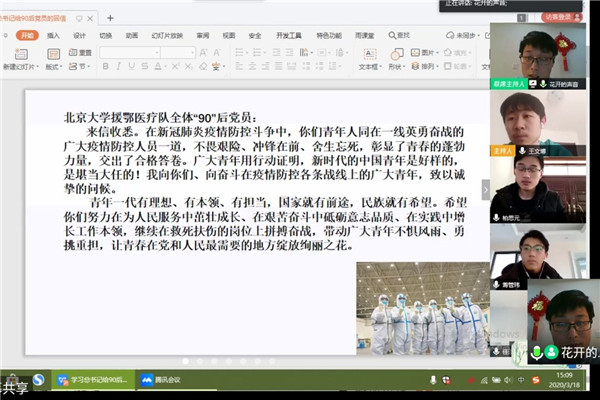英国上市365官网第一时间组织引领广大同学、学生骨干开展学习“习近平给北京大学援鄂医疗队全体‘90’后党员的回信”主题活动。习近平总书记的回信在365官网学子中引起强烈反响,大家纷纷表示在今后的学习和生活中,始终牢记总书记的嘱托,在艰难困苦中砥砺意志品质,在实践中增长本领,以青春之我奋斗之我诠释责任与担当,用行动谱写青春华章,“让青春在党和人民需要的地方绽放绚丽之花”。