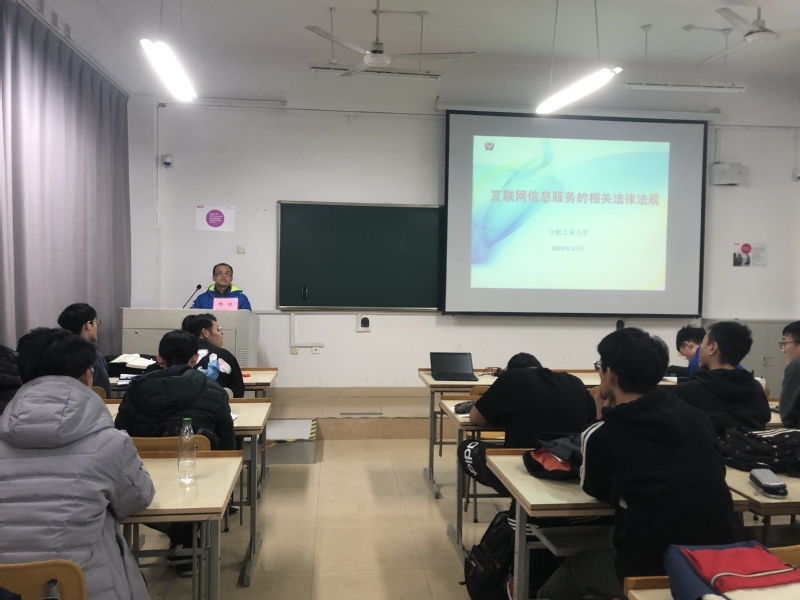 杨波警官从“网络安全法律法规的发展历程”、“网络安全法律法规条款详解”、“网络安全部门执法案例”三个方面作题为“互联网信息服务的相关法律法规”的报告,并向全场学生提出要做知法、懂法、守法的计算机从业者。