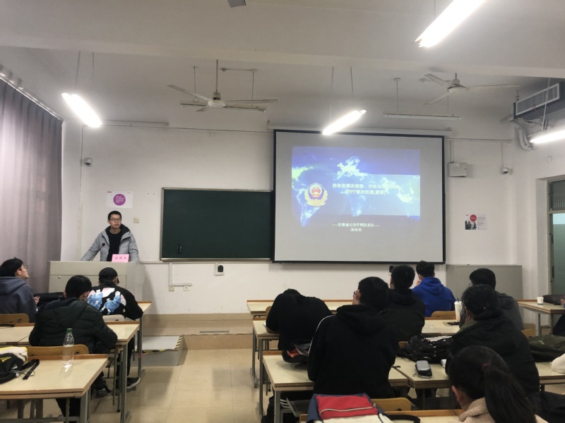 2019年12月12日,安徽省公安厅网安总队杨波警官、汤伟杰警官受邀来英国上市365官网作报告,报告由英国上市365官网网络与信息安全研究所所长胡东辉主持,信息安全专业2018级全体学生参与报告。