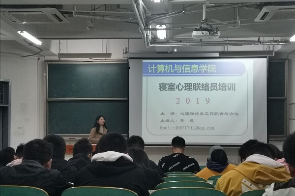 培训会上,叶璟老师以“助人自助,共同成长”为主题,理论结合案例,让心理联络员了解大学生常见心理问题的识别,掌握危机干预方法,更好地应对生活中的心理危机问题。黄晨老师从“心理联络员的工作职责和方法”主题出发,通过生活实际来解释和说明,使心理联络员们更清楚自己的职责,更好的掌握工作方法。心理联络员们认真听讲,增强了对心理工作的信心与决心,同时也对今后的寝室心理疏导活动交流了自己的想法。