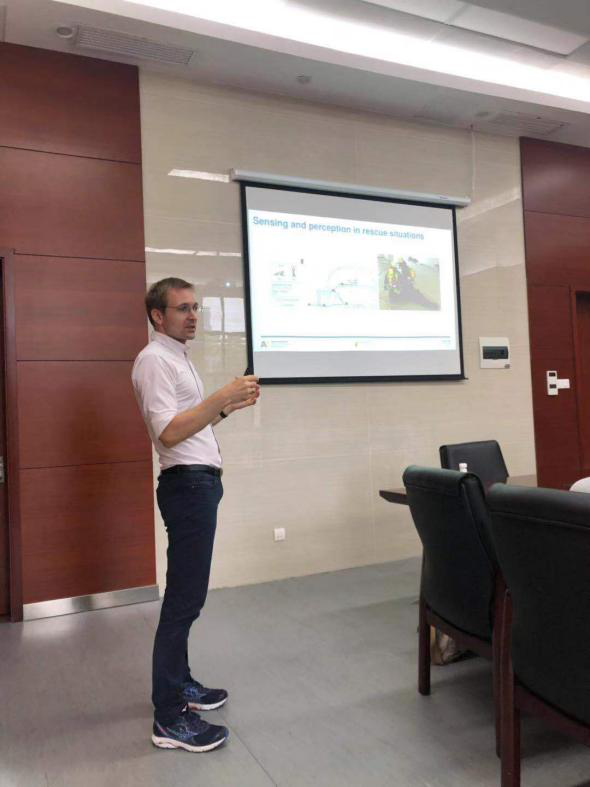 在报告会上,Stephan Sigg教授首先展示了其团队的最新研究成果——Closed-Eye Gaze Gestures,使用智能眼镜摄像头检测和识别闭眼运动。随后,Stephan Sigg教授主要介绍了该领域的一些比较成熟而多样的研究理论与研究方法(如利用频域、时域、相位和菲涅尔效应等),以及有效的工具(如调频连续波FMCW、合成孔径雷达以及全息无线电等)。并展示了其团队近些年在该方向的研究工作,如基于射频的人类动作识别、驾驶员情绪感知等。最后,Stephan Sigg教授总结了目前该领域的显著成果和应用,并对当前的主要挑战和公开问题进行了讨论。报告会结束后,在座师生就感兴趣的话题和Stephan Sigg教授进行了深入交流。