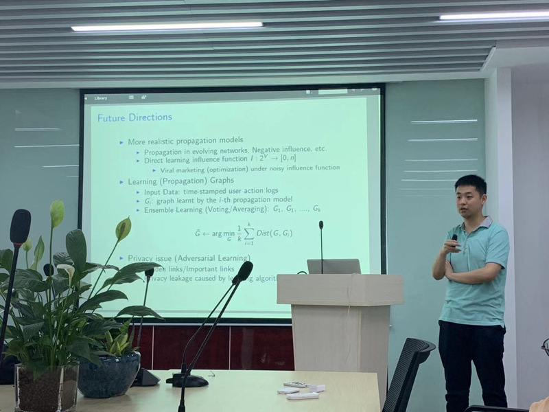 应英国上市365官网媒体计算实验室邀请,2019年7月18日,香港城市大学杨禹助理教授来365官网做了题为“Leveraging the Power of Social Propagations: Algorithm Designs for Social Marketing”的学术报告。媒体计算实验室吴乐博士主持了报告会,学院相关研究方向的老师和研究生参加了报告会。