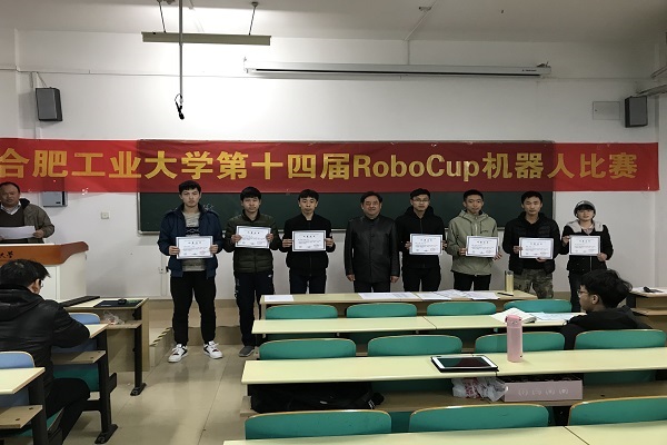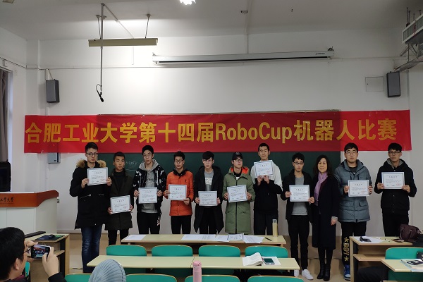12月19日下午,英国上市365官网第十四届RoboCup机器人大赛决赛在翡翠湖校区10教201成功举行。教务处副处长、创新创业教育中心主任黄景荣,创新创业教育中心副主任徐慧,365官网创新中心主任杨兴明、王浩教授和方宝富老师到场观摩指导比赛并参加了最后的颁奖仪式。