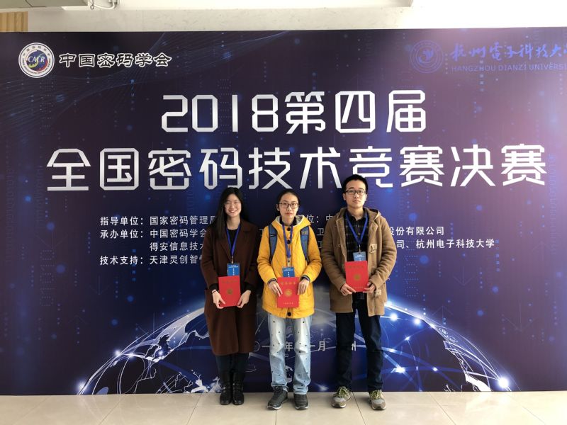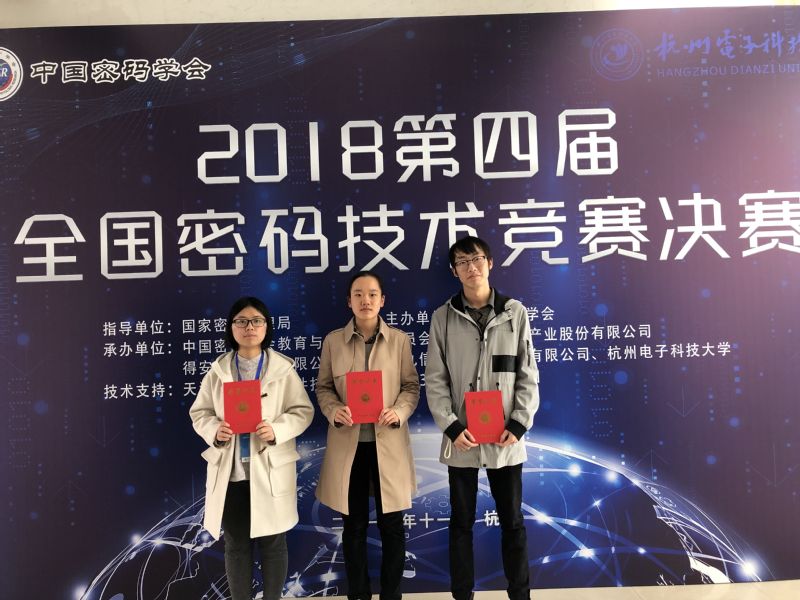 通过作品讲解、现场演示、专家提问等环节,我校队伍共获得二等奖1项,三等奖1项的成绩。其中阮雯雯、张帆、刘轩同学的作品《SM4算法的认证加密模式设计与实现》(指导老师:郑淑丽)获得全国二等奖,卢瑶、陈冰冰、单文婧同学的作品《SM4算法的新型白盒实现》(指导老师:朱晓玲)获得全国三等奖。竞赛在8月份开始报名,分为三个阶段:初赛、复赛和决赛,初赛优胜者进入复赛,复赛优胜者进入决赛。初赛通过网络在线答题由系统自动评审,复赛通过网络上传比赛作品由专家网络评审,决赛采用现场答辩方式进行。初赛、复赛和决赛均已团队方式进行。