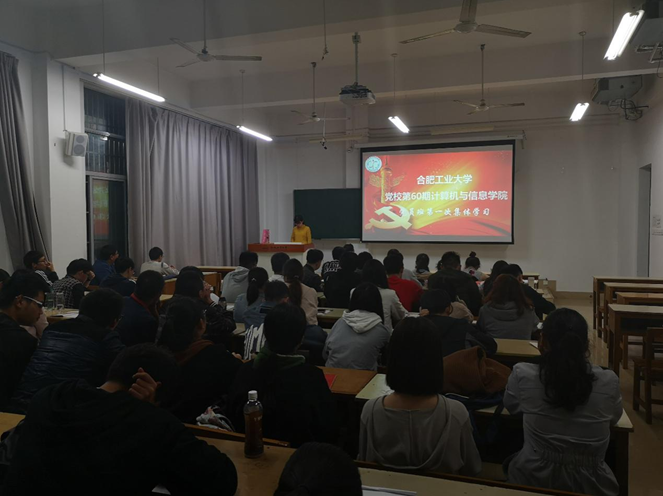 2018年10月25日晚20点党校第60期英国上市365官网党员班第一次集体学习在翡翠湖校区3教207教室举行。班主任刘世国主持本次集体学习,党员班55位成员参与了本次学习。