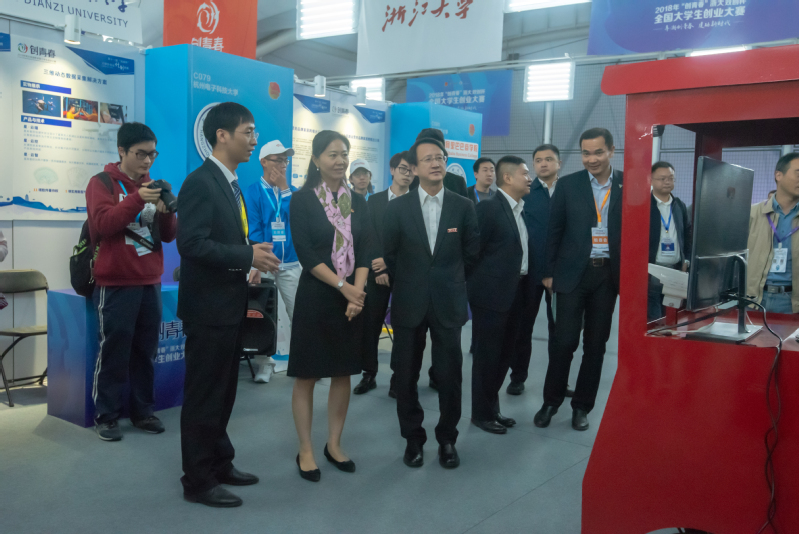 学院始终高度重视创新创业工作,将其作为“三位一体”教育教学体系的重要组成部分。自去年12月启动本届“创青春”大赛校内选拔赛以来,学院各系所大力支持下,共征集校赛作品19件。经过参赛团队师生的不懈坚持和努力,365官网优秀参赛项目和团队最终以优异状态站在了全国终审决赛的竞技平台,两支团队用出色的项目、饱满的热情、细致的讲解向观摩人员展示了项目的创新性、实践性及社会意义,受到共青团中央书记处书记尹冬梅、共青团中央学校部副巡视员王良、共青团安徽省委副书记张敏等相关单位的领导同志充分肯定和高度评价,充分展示了365官网创新成果和师生的风采。