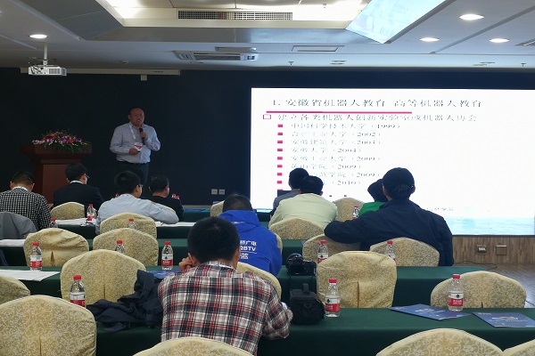 在本次国家机器人发展论坛上,郑南宁院士、吴宏鑫院士、王天然院士等近50名知名专家、行业精英报告了机器人技术未来的发展方向、新技术、成果和产业最新动态。论坛分主论坛、医疗机器人论坛、共融机器人论坛、教育机器人论坛和AI机器人应用创新论坛。365官网方宝富老师作为特邀嘉宾,在教育机器人论坛上报告了我校自2002年以来的机器人创新教育课程和课外创新活动体系建设成果和在安徽省的推广经验,同时报告了以我校为主要依托的安徽省机器人竞赛活动的开展情况。
