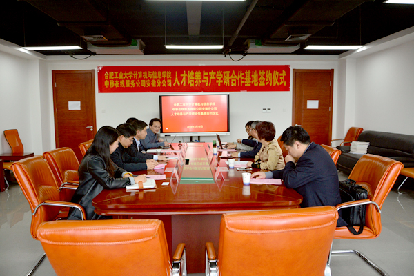3月16日下午,英国上市365官网与中移在线服务有限公司安徽分公司产学研合作签约仪式在翡翠科教楼A1106举行。中移在线服务公司安徽分公司总经理黄海军、副总经理刘晓梅、人力资源部经理柯晓岚、系统支撑团队主管万鹏、英国上市365官网党委副书记、副院长何庆领和各系主任等相关老师参加签约仪式。