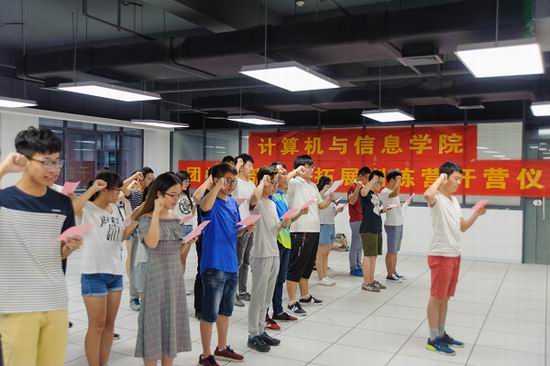 本次活动在训练营开营仪式中拉开序幕,所有团学干部在团旗面前重新温习了庄严的入团宣誓辞,牢记自己身为一名优秀的共青团员,加入学院团学组织的初心和目标。之后在学院团委书记黄晨老师的带领下,同学们从“一张名片”开始,重新对自身进行定位,明确自己身为团学干部所承担的责任。之后的“寻根觅友”“心有千千结”则是从加强内部了解、提高团学组织凝聚力和团队协作等能力进行交流和培训。同学们在活动中慢慢从相互陌生变得相识相知,多数同学表示通过本次训练营的培训和交流加快了团学组织内部的熟悉程度,更有利于今后尤其是2017级迎新工作的开展和后续各项活动的布置和安排,也更加体会到学院团学工作的“家文化”氛围。也表示将把本次素质拓展训练营所学到的理念向大一所传授,将学院的理念传承下去。