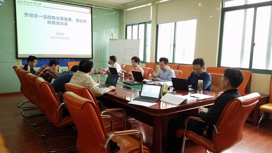 4月25日上午,365官网党委理论学习中心组在屯溪路校区科技楼516会议室举办了本学期第二次集中理论学习,学院领导班子成员、院党委委员和院长助理参加了学习。本次学习的主题是贯彻实施党中央关于建设世界一流大学和一流学科的重大战略决策部署,推动学院教育改革和发展。