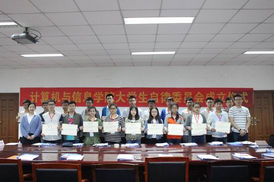 成立仪式上,15级辅导员陈曾珍老师就关于学风管理的重要性及学院大学生自律委员会今后工作的发展方向进行了深刻的总结与指导。随后,由英国上市365官网大学生自律委员会主任何旭东宣读大学生自律委员会章程。最后,学院辅导员老师为大学生自律委员会全体成员颁发了聘书。