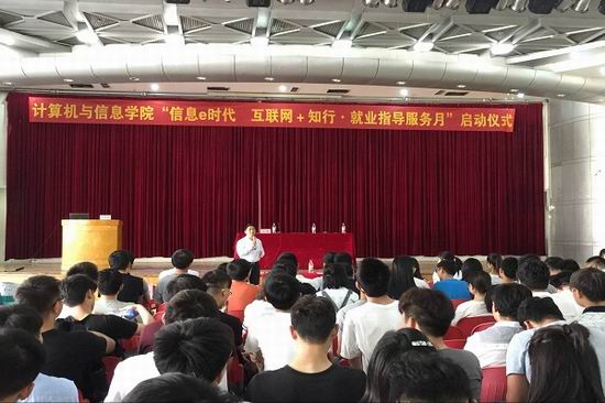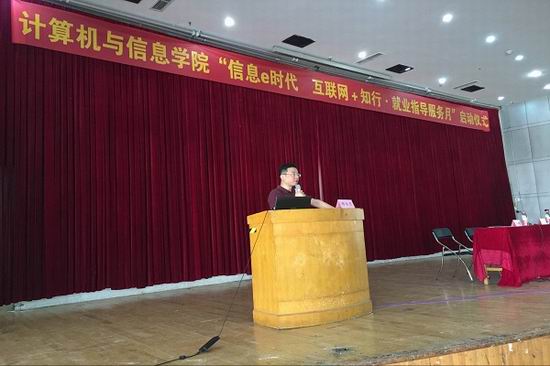 5月10日下午,365官网举办了“信息e时代,互联+知行”2018届毕业生创业就业指导服务月启动仪式。学院副院长杨学志、学院党委副书记何庆领、年级辅导员及2014级全体同学参加了仪式。