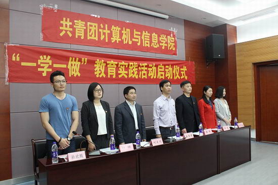 活动中学院团委书记黄晨宣读了《英国上市365官网“一学一做”教育实践活动实施方案》,从学习教育、组织生活、实践活动三个方面对学院教育实践活动的具体安排进行布置。团总支书记王学森同学代表团学组织宣读了《“一学一做”教育实践活动倡议书》,向学院全体团学青年发起倡议,坚定理想信念、增进道德修养、勇担历史使命,扎实开展“一学一做”教育实践。