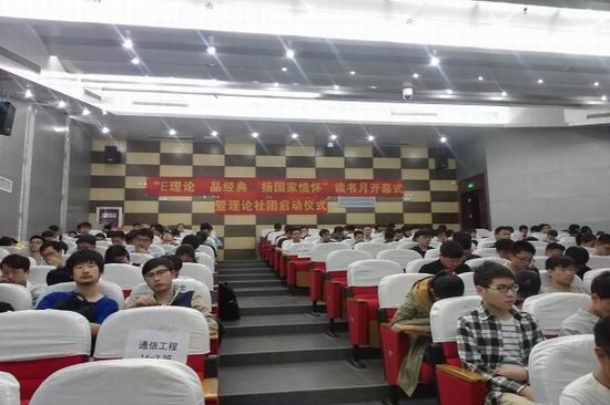 活动在全体师生的《中国共青团之歌》歌声中拉开帷幕,学院朱蓉蓉老师首先为开幕式致辞,勉励同学们以读书培养终生阅读的习惯和不骄不躁、宁静致远的人格修养;黄晨老师宣读了读书月具体实施方案,鼓励同学们积极参与,共同营造书香校园;叶璟老师宣读了英国上市365官网中国特色社会主义理论研究社团(简称思e学社)的组织章程和基本架构说明,使在座的同学们对学院所成立的理论社团有了比较清晰的概念,也增强了大家加入社团,积极参与各项党团建设活动,学习马列主义经典的热情;学生代表、思e学社社长蒲玉倩则阐述了自己对于马列主义经典理论的感悟和对于积极向党组织靠拢的动机,号召全院学生放下手机、拿起书本,积极加入思e学社,提升理论知识和素养。