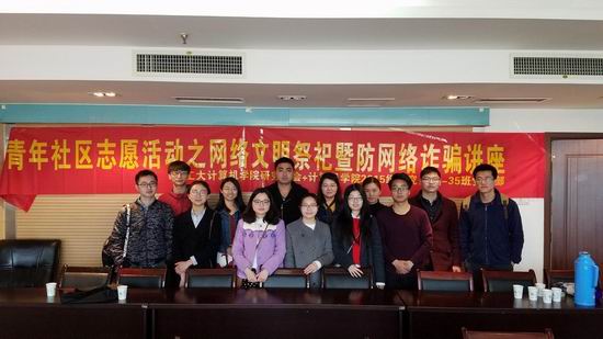 2017年3月27日,计算机学院研究生会与计算机学院15级34-35班党支部共同走进包公街道青年社区展开网络文明祭祀暨防网络诈骗讲座,此活动主要针对社区中老年群体。