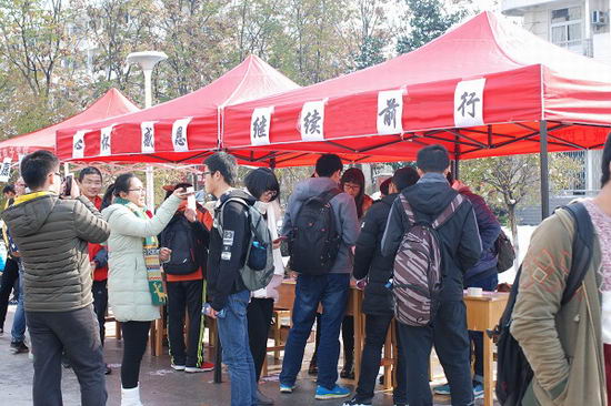 为了积极响应党中央对大学生的总体要求,提供整体素质,让在校学生知晓感恩、懂得感恩,善于向周围人表达感恩之情。在西方的感恩节期间,英国上市365官网青年新媒体中心11月24日中午,在翡翠湖校区三食堂门口举办了“心怀感恩,继续前进”定制明信片活动。同学踊跃参与,汇聚而来的热情使这个原本寒冷的冬天洋溢着一丝暖意。