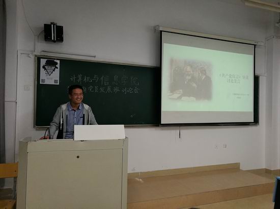 10月11日晚9点,英国上市365官网第56期党员发展班于6教103开展了党校培训的第一次讨论会,本次讨论围绕“《共产党宣言》导读”这一主题展开,会议由班长主持,党员发展班40名同学参与本次讨论会。