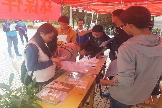 本次活动中,干事们首先拿着精心制作的宣传单向路过的同学介绍此次活动内容—如何发照片、秀出环保搭档照片、优秀作品的奖励等。邀请有意愿的同学报名参与。接着让同学们登记班级、姓名、联系方式等,最后请他们扫码关注先锋志愿中心的公众号。很多同学都对环保持有支持的态度,并且积极参与进来,使得这次宣传收到良好的效果。