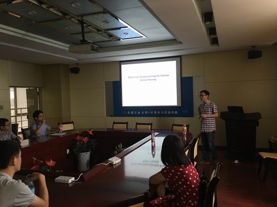 2016年9月1日,应英国上市365官网邀请,英国Northumbria大学邵岭教授在365官网开展了题为“Multi-task Deep Learning for Human Action Parsing”的学术报告。报告会由汪萌副院长主持,来自365官网各个系所的师生参加了此次报告会。