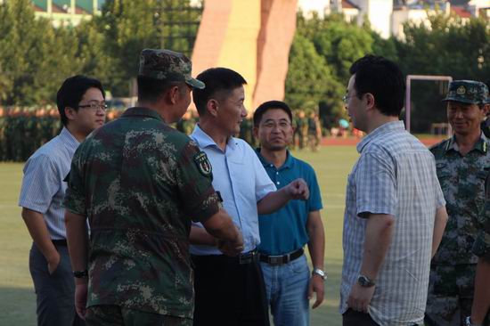 院长徐常胜、祖权书记等一行先对因病、因伤无法进行军训的学生进行关心与问候,劝导他们不要因无法军训而遗憾,只要为集体做出贡献的兵就是好兵,感谢他们为同学们提供的后勤服务。