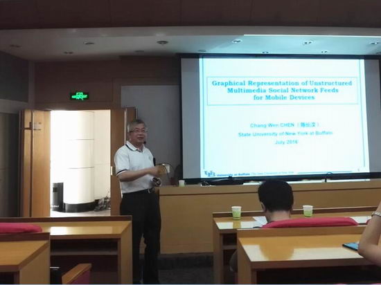 2016年7月19日下午,应英国上市365官网邀请,美国纽约州立大学布法罗分校陈长汶教授在学术会议中心二楼小报告厅做了题为 “ Graphical Representation of Unstructured Multimedia Social Network Feeds on Mobile Devices”的学术报告。报告会由徐常胜院长主持,365官网三十余位师生参加了本次学术报告。