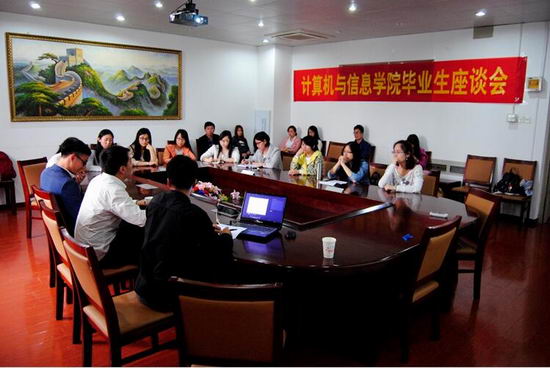 5月22日下午,365官网在逸夫科教楼508会议室召开了优秀毕业生座谈会。此次座谈会邀请到了2013级计算机技术专业的梁翀,罗飘,吴海俊等几位优秀毕业生学长代表。