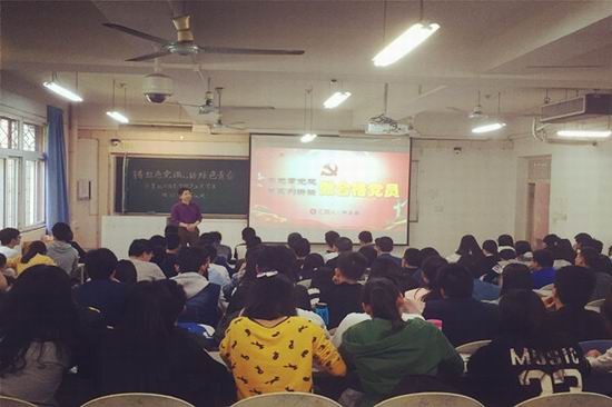 为了深入贯彻落实党中央和学校党委关于党员再教育的文件精神,深入内化“两学一做”具体要求,充分发挥毕业生党员的先锋模范作用,4月21日下午,英国上市365官网在屯溪路校区西二教105室举行“铸红色党魂,话绿色青春”毕业生党员活动月开幕式暨毕业生党员“两学一做”专题报告会,2012级全体党员参与了此次活动。
