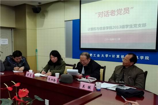 为了进一步贯彻党的十八届五中全会精神,做好新形势下的学生党建工作,充分发挥优秀党员“传帮带”作用,12月11日下午,英国上市365官网开展“对话老党员”主题座谈会。校关工委朱功勤教授和校党建组织员吴挺老师应邀参加。屯溪路校区全体学生党员参加了本次座谈会。
