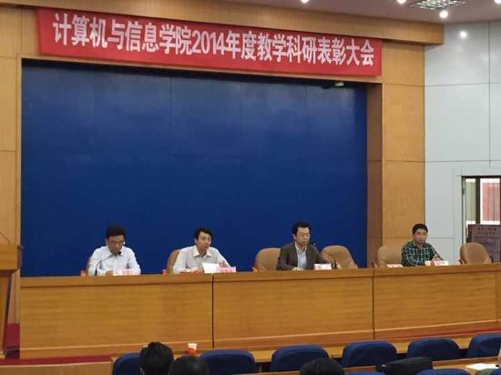 大会对2014年度学生评教中排序前二十名的个人授予了“2014年度学生评教个人优秀奖”;对2014年度科研项目纵向到账经费50万以上,横向到账经费100万以上的个人授予了“2014年度承担科研项目个人优秀奖”,现场举行了颁奖仪式并合影留念。