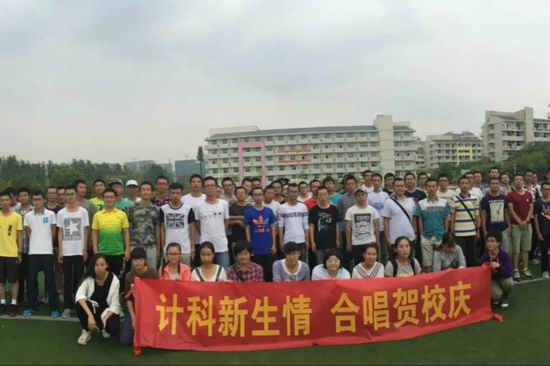 9月25日,英国上市365官网15级新生在翡翠湖校区西操场上举行了“计科新生情,合唱贺校庆”的合唱校歌活动。计算机科学与技术专业三个班全体同学均参加了这次活动。