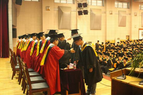 学院副院长杨学志,导师代表路强老师分别在仪式上发言,从不同的角度表达了学院及全体教职员工对2015届毕业生的衷心期盼与依依惜别之情。同时,学位获得者代表王彬以大学四年经历与对未来的畅想表达了对母校的感激之情以及奉献社会的决心。