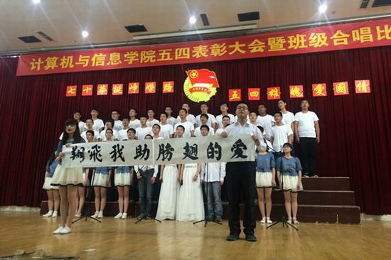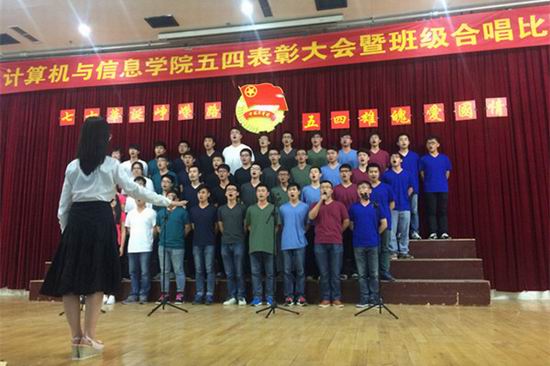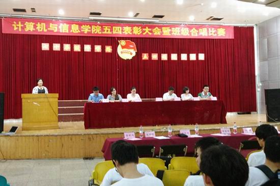5月11日晚,英国上市365官网2014-2015年度“五四”表彰大会暨班级合唱比赛在翡翠湖校区综合楼301成功举行。校团委、学院相关负责人出席大会。该院翡翠湖校区全体学生参加本次大会。