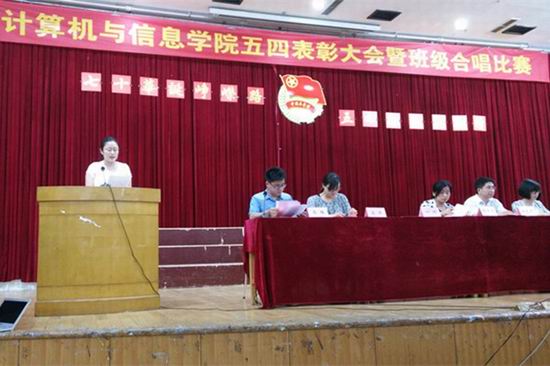大会在庄严的团歌中拉开帷幕,该院2011级辅导员叶璟老师宣读了对本年度优秀共青团员、优秀共青团干、优秀团支部的表彰决定,与会老师为获奖的个人和集体代表颁奖;随后来自计算机科学与技术14-3班的阎甜雨同学作为获奖代表发言;最后,校团委副书记郑召丽进行了总结讲话,她为该院共青团工作取得的进步和成效“点赞”,为全体共青团员的辛勤付出“点赞”,为广大青年身处的美好时代“点赞”。