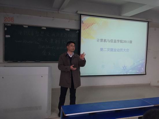 为进一步推进2015届毕业生就业工作的顺利进行,英国上市365官网2015届毕业生第二次就业动员大会于3月27日下午3点在西二教学楼206召开。学院党委副书记、副院长何庆领,2011级辅导员叶璟和2011级本科生参加了动员大会。