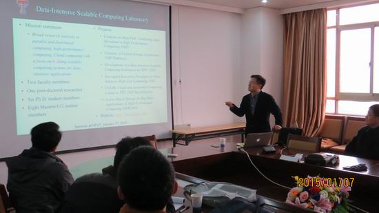 2015年1月7日上午,应英国上市365官网邀请,德州理工大学(Texas Tech University )陈勇教授在逸夫楼508会议室做了题为“面向数据密集型高性能计算的解耦执行模式”的精彩报告。本次报告由365官网郑利平副院长主持,来自本学院的诸多对并行计算感兴趣的老师与学生踊跃参与了此次报告。